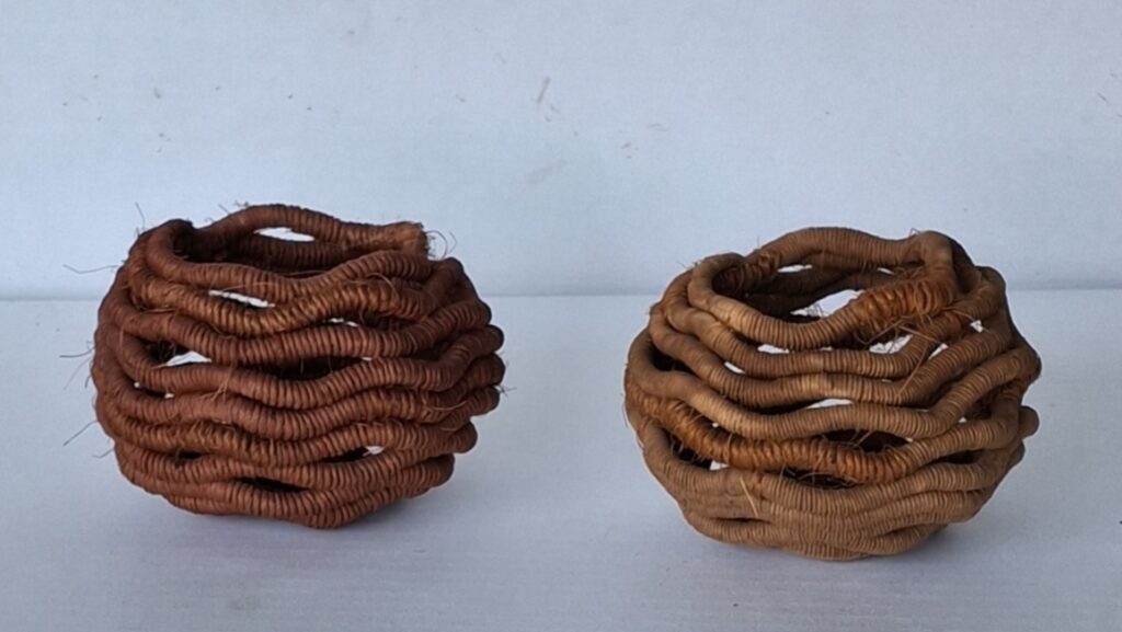 Sjælene der blev brugt er poly reb 8 mm og papirsnor 3mm. Garnerne der blev brugt er: sisal hør samt tyk og tynd jute.