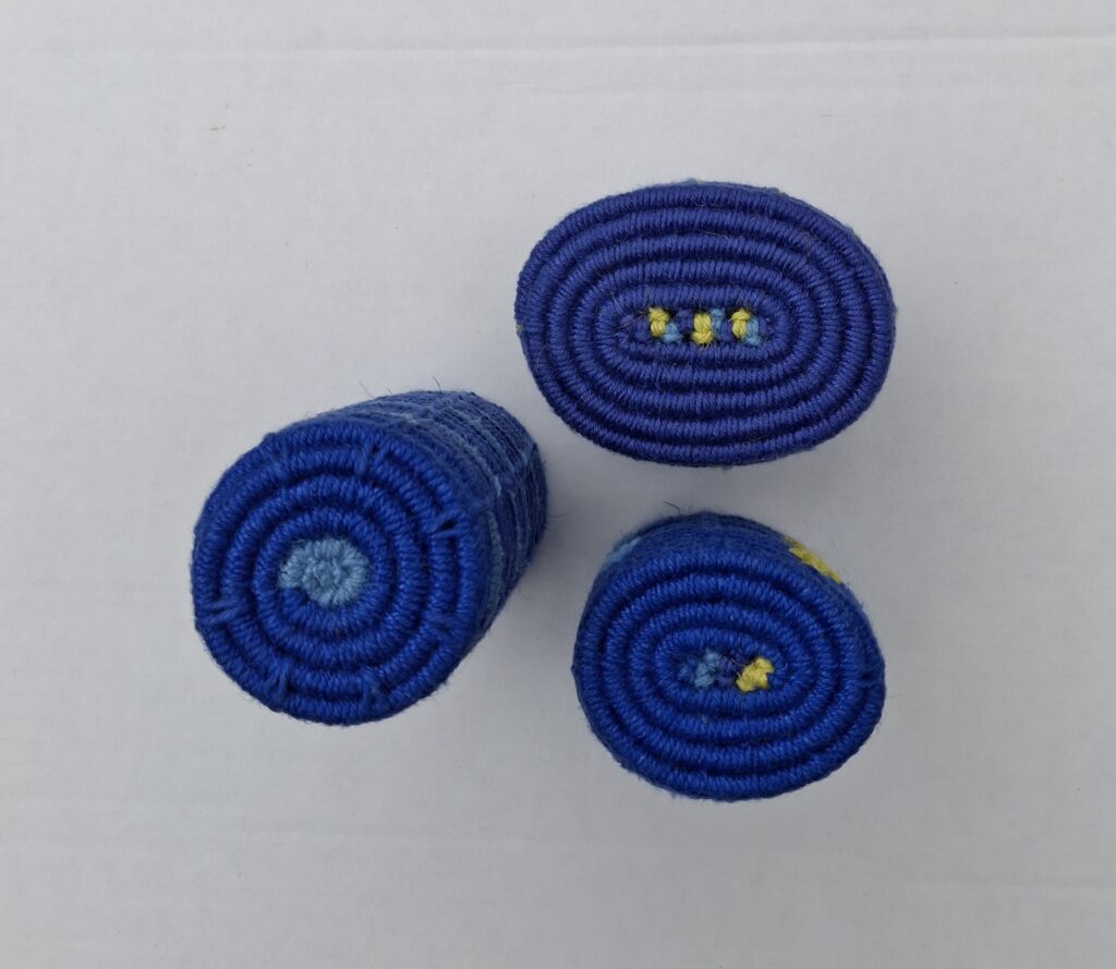 tyk jute, tynd jute og til sidst sisal. Sjælens tykkelse følger den oprindelige cylinder, så den grønne hør bindes på den tynde sjæle, den limefarvede sisal bindes på den tykke sjæl etc.
