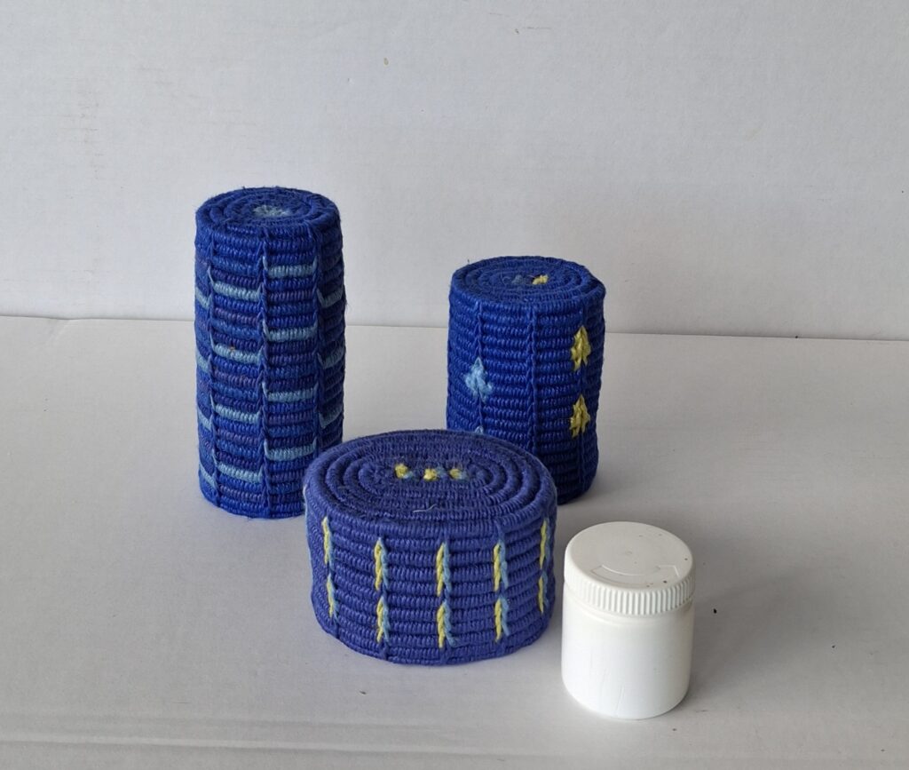 Jeg blev begejstret for farverne i den første cylinder, som inspirerede mig til at binde foreløbig tre variationer.