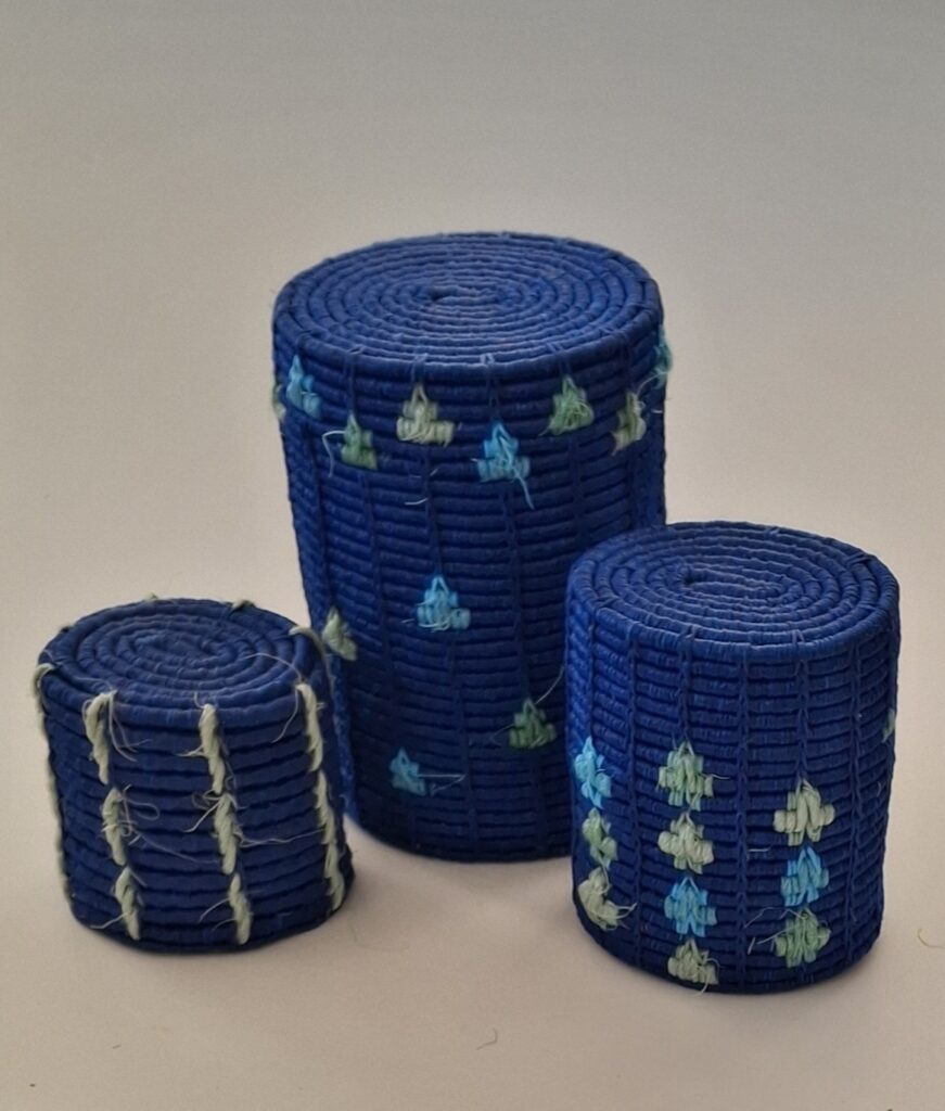 Sjælene der blev brugt er poly reb 8 mm og papirsnor 3mm. Garnerne der blev brugt er: sisal hør samt tyk og tynd jute.